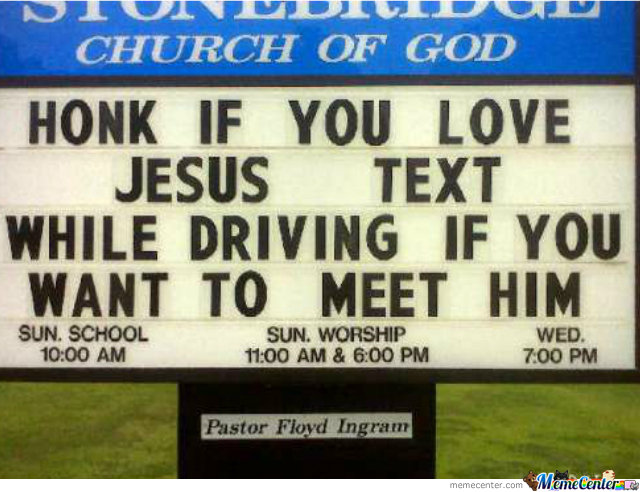 While they might have a few noise complaints with this one, at least they’ll know how much their community cares about Jesus. Showing your love for the Lord will definitely bring you good karma, but texting about it is definitely not… Both for you and the drivers around you.