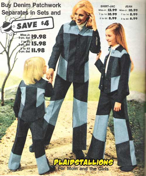 We don’t care if we save $4, there is no amount of money you could PAY us to wear a patchwork denim suit! We’d like to keep our denim in one color, thank you very much.