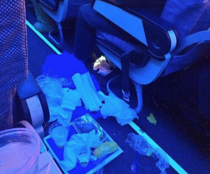 This passenger decided to make the plane aisle into their personal garbage can, and one can only shudder and think what their home looks like.