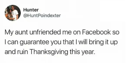 Big family gatherings tend to erupt in some kind of drama. You haven’t seen each other in about a year and now you’re all seated at the same dinner table. Maybe feelings about certain social media posts or interactions have been stewing over the months. Now’s the time to let it all out! Just make sure not to disturb any of the carefully plated food.