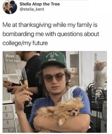 Some of us feel very attacked at the Thanksgiving table. We’re seated with the adults, sipping our glass of wine and trying to enjoy our mother’s famous mashed potatoes. That’s when the questions start coming. All you wanted was a nice peaceful meal and suddenly you have to justify why you’re single and living with a dog.