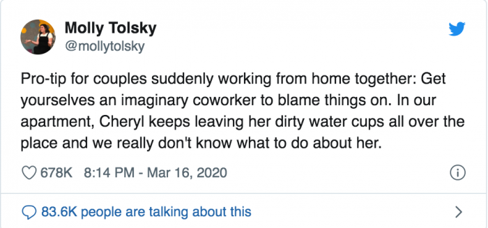 Now that sounds like some couples therapy. I think I might just adopt this in my apartment so that no one calls me out for leaving my dirty dishes all over the house. We can all use a Cheryl every now and then.