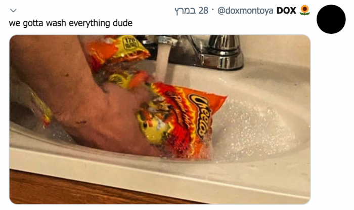 It makes sense that, during a global pandemic, people would begin taking extra precautions to keep them and their families safe. But I never thought humankind would find itself viciously washing bags of Cheetos in the kitchen sink after getting them from the bodega around the block.