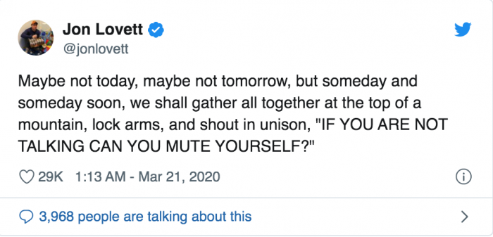 Thank God for twitter because this needed to be said. It’s so baffling how people somehow don’t realize when they’re unmuted. There’s a mute button on the remote control for the TV and people seemed to have figured out how to use that just fine.