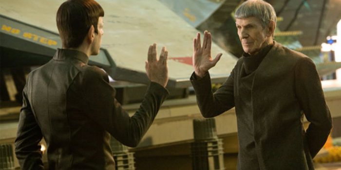 Before he went, he left fans with a satisfying good-bye- in the 2013 film Nimoy makes an appearance to advise Zachary Quinto’s younger Spock on how to deal with treacherous villain Khan.