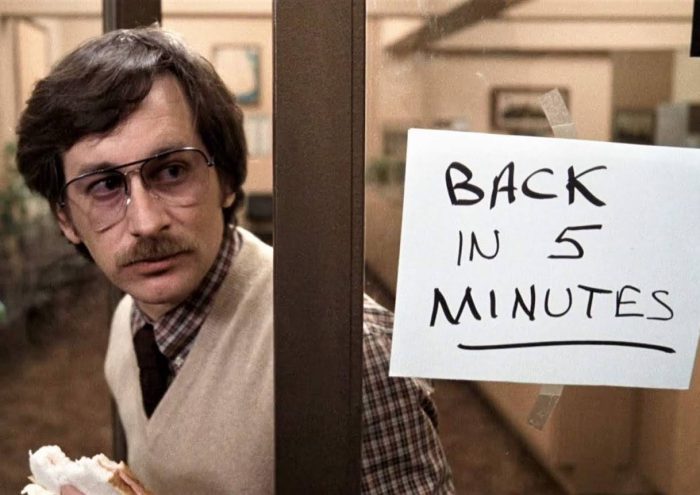 Jaws director appears near the end of the film as the office clerk who works at the Cook County Assessor’s Office.