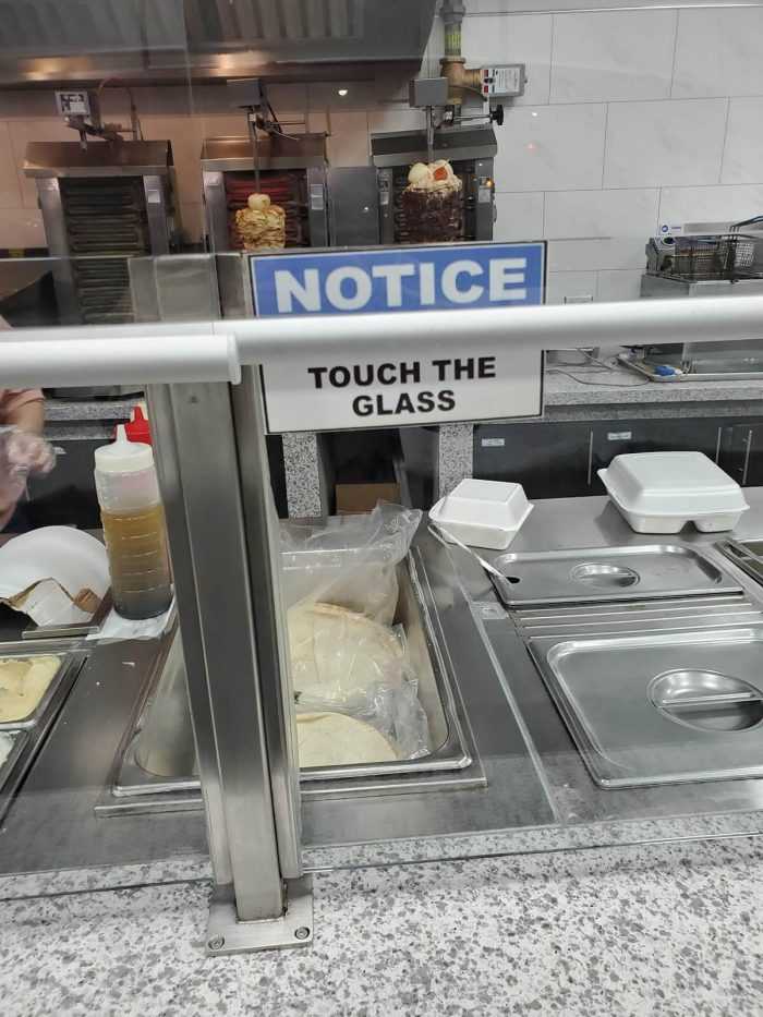 In today’s super litigious society, potentially anything can become a lawsuit. In order to reduce any risk, many businesses put up signs in order to prevent getting sued in the future. However, this restaurant’s sign could actually backfire on them, as it encourages customers to do something that might hurt them. Better watch out for little kids who like to get their hands on everything in sight.