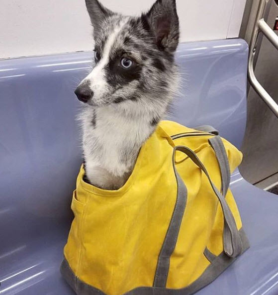Upon clicking on her owner’s account, who goes by the adorable handle dog. dad, I discovered that contrary to popular belief, this is in fact a dog, a Pomsky to be exact, just minding his own business on the subway.