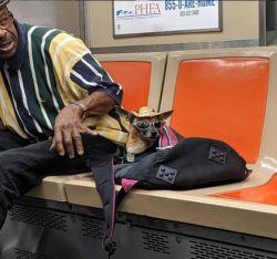 I could never live in New York, even the dogs are way cooler than me. This lil guy is acting totally nonchalant, like “what are you looking at, I’m just a dog wearing sunglasses and sombrero while riding the subway”. The owner is explaining his thought process behind the look and seems almost just as stylish as his furry companion.