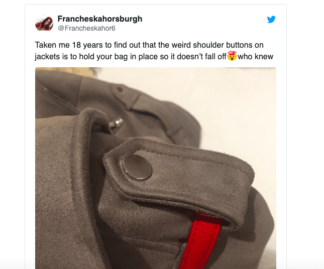 Why would you torment the women of the world that way? At least this tweet taught us that some design features on female clothes have a purpose.