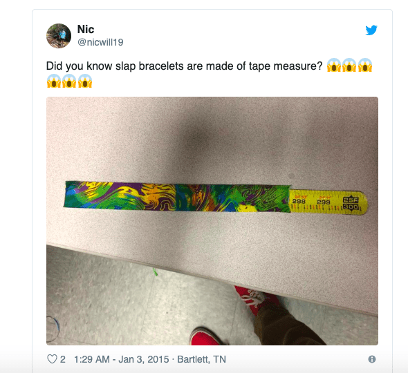 These ‘slap bracelets’ along with slinkies, Tamagotchis, Furbys, silly putty, and jelly shoes, were almost definitely on your Christmas wishlist.