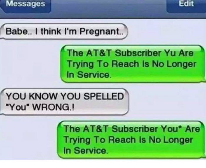 So when she caught him, he didn’t even say he’s sorry he just texted her back with the same text without the typo. What a douche.