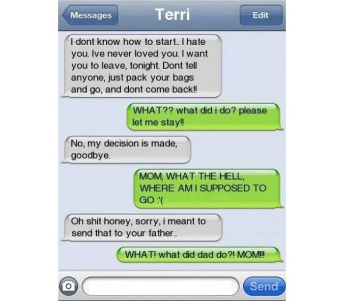 Well, this is very uncomfortable. Poor Terri thought he was being kicked out of the house, only to find out a minute later this message was meant for his father and not for him which means his parents are separating, which is the worst way to find out.